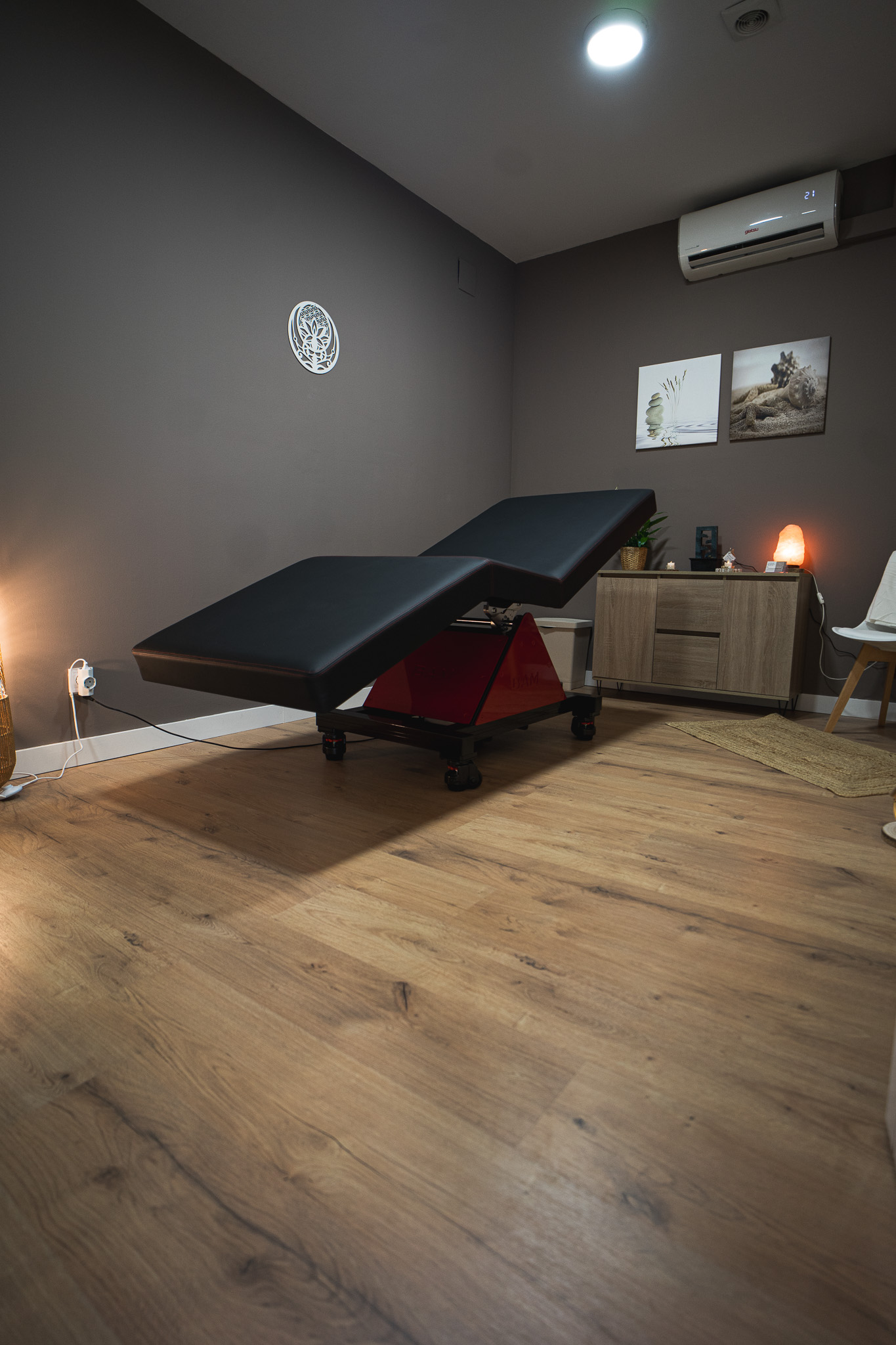 La Unidad BAM (Biomecánica de Ajuste Mecánico) es un sistema dinámico de relajación profunda que funciona a través de movimientos suaves, rítmicos y constantes. Estos movimientos pasivos actúan sobre tu cuerpo sin que tú tengas que hacer esfuerzo alguno. Tú solo te recuestas, cierras los ojos y dejas que la tecnología haga su trabajo.